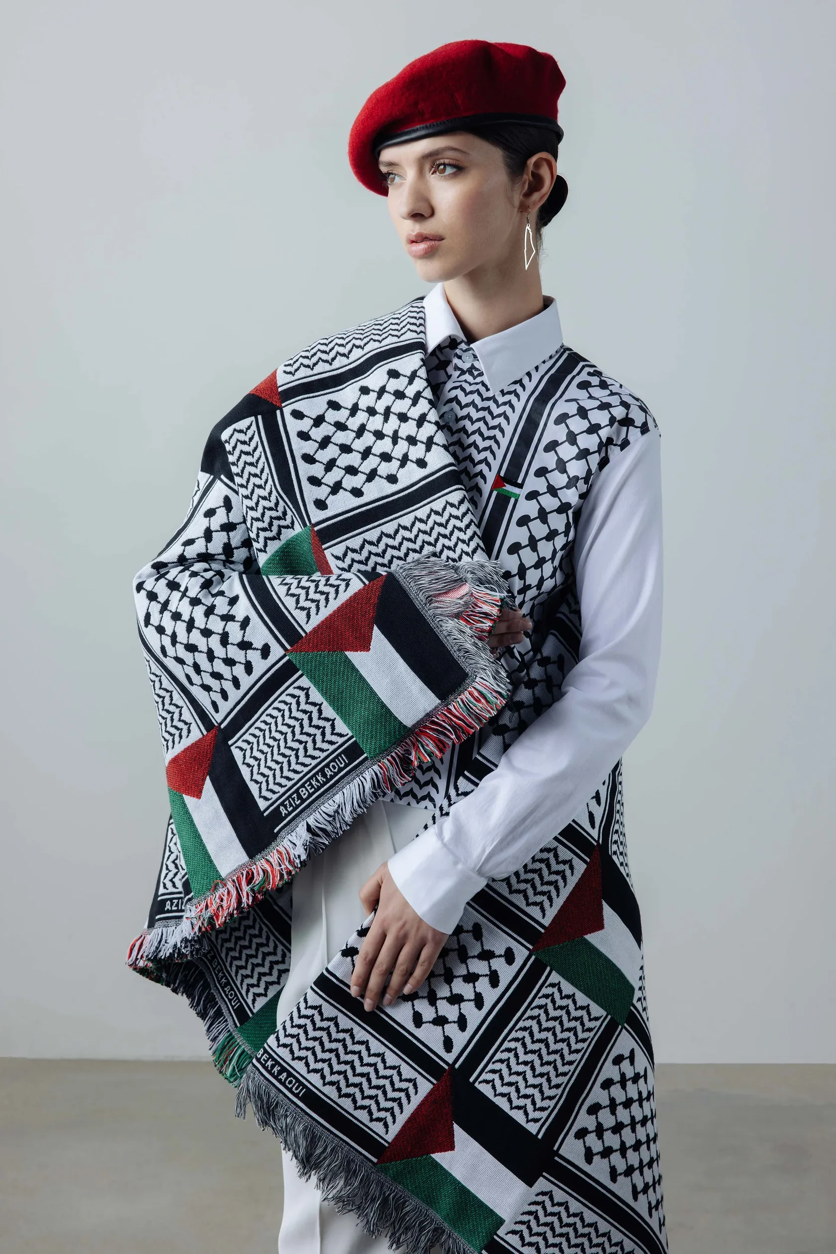Голландско-марокканский дизайнер Азиз Беккауи превращает подиум в платформу для солидарности с Палестиной. Его коллекция World Keffiyeh — это не просто одежда, а язык протеста, форма культурного самовыражения и дань палестинскому наследию.